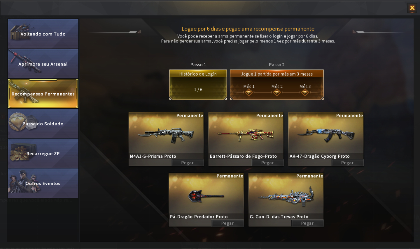 🔫⭐ 1 arma VIP Proto disponível para resgate (5 opções, escolha 1)